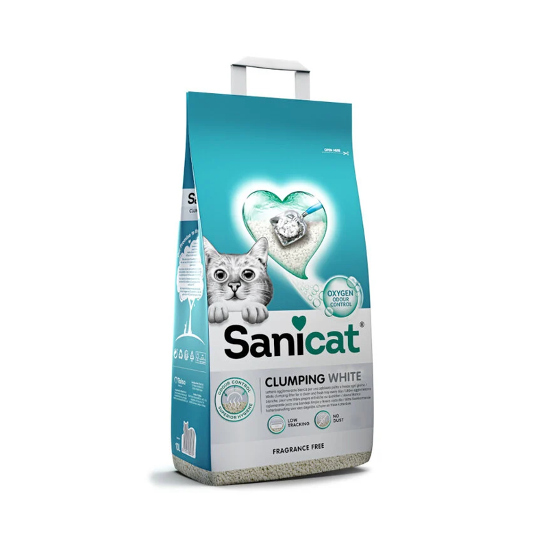 Composición natural: Fabricada con bentonita blanca natural, garantiza una alta capacidad de absorción y una textura suave para las patas de tu gato.