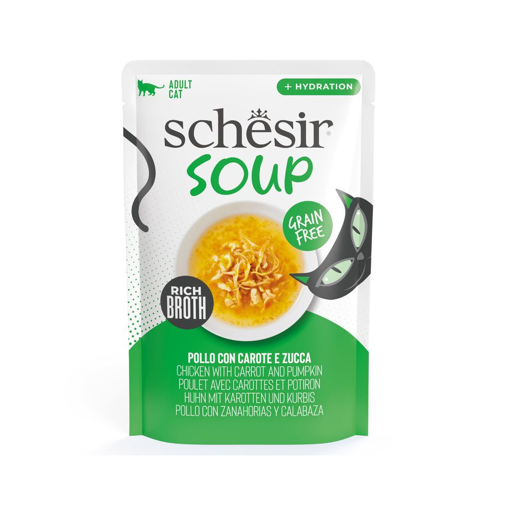 Pack sopas Schesir Comida Húmeda Gato Soup Pollo y Calabaza Unidades pack 12 x 40 gr