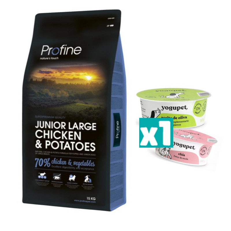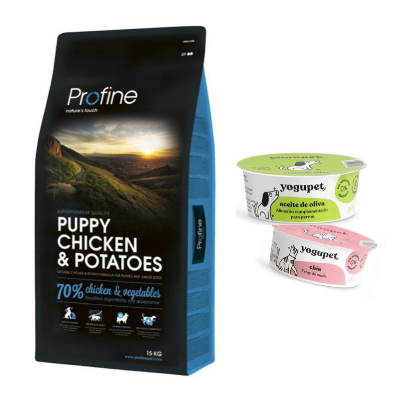 Pollo 45 % (pollo deshidratado 25 %, pollo deshuesado 20 %), maíz, grasa de pollo (conservada con tocoferoles mezclados, fuente de vitamina E) (12 %), patatas (11 %), manzanas secadas, levadura de cerveza, hígado de pollo hidrolizado (2 %), gambas (1,5 %), aceite de salmón (1 %), algas marinas (0,5 %), sulfato de glucosamina (0,025 %), raíces de achicoria (fuente de manano-oligosacáridos 0,02 %), mezcla de hierbas (hinojo, albahaca, salvia 0,02 %), fructo-oligosacáridos (0,015 %), extracto deyucca schidigera (0,015 %), sulfato de condroitina (0,015 %).