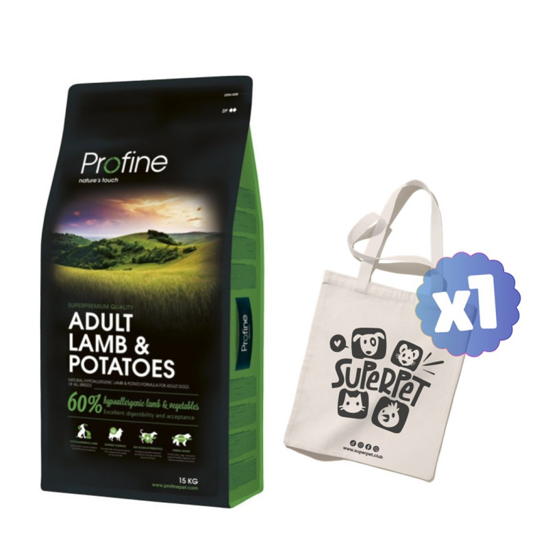 Profine Perro Adulto Cordero y Patatas es un pienso completo elaborado para cubrir las necesidades de los perros adultos de raza pequeña o mediana. La carne de cordero y la patata evitan alergias alimentarias.
