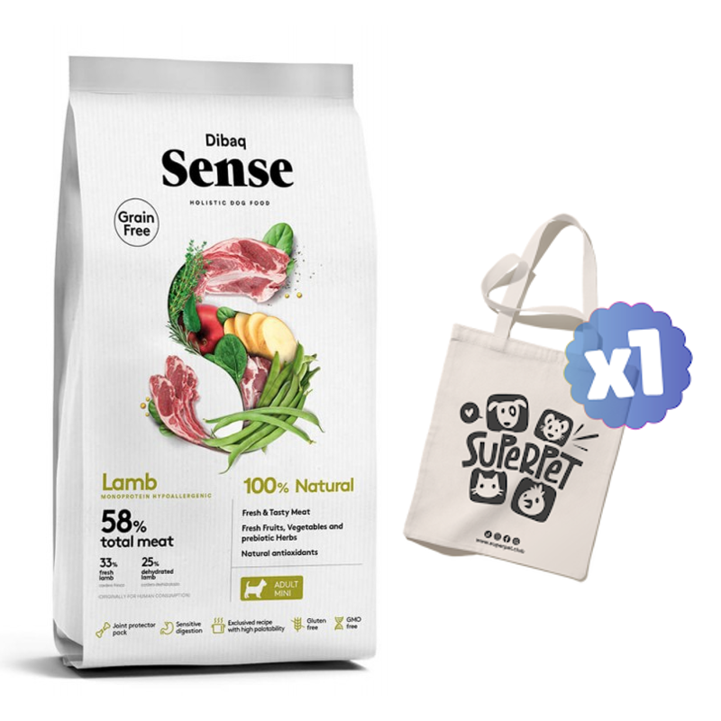 Carne fresca de cordero 33%, carne deshidratada de cordero 25%, guisantes pelados, patatas, aceite de pollo, pulpa de remolacha, hidrolizado de hígado de cordero, verduras y frutas frescas 4% (judías verdes y manzana), Ceratonia siliqua , aceite de salmón (fuente de ácidos grasos omega 3 y 6), sustancias minerales, pack protector articular (condrotina sultato, glucosamina sulfato y MSM), yuca, raíz de achicoria (fuente de inulina-FOS), levaduras (MOS) y plantas aromáticas con propiedades antioxidantes naturales (romero, tomillo y orégano).