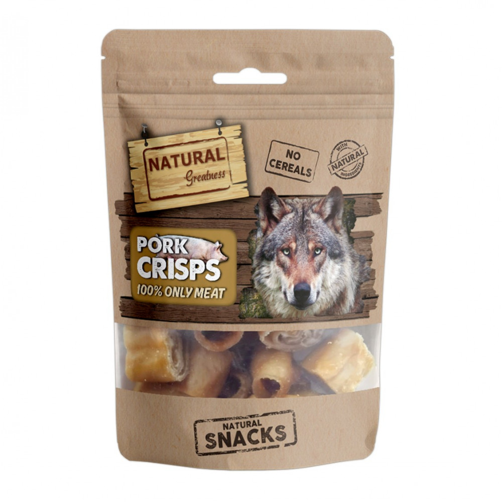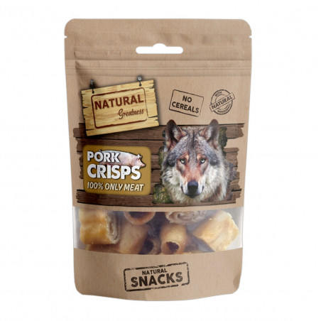 Snack bajo en grasa monoproteico para perros I Natural Greatness Snacks Only Meat Pork Crips PESO 70 gr