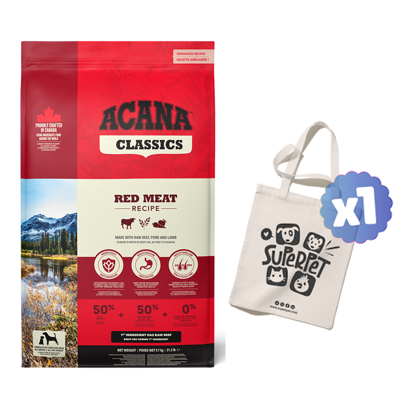 ACANA Classics Red Meat está formulado para cumplir con las recomendaciones nutricionales establecidas por FEDIAF para los alimentos de perros en todas las etapas de la vida, excepto para el crecimiento de perros de tamaño grande.