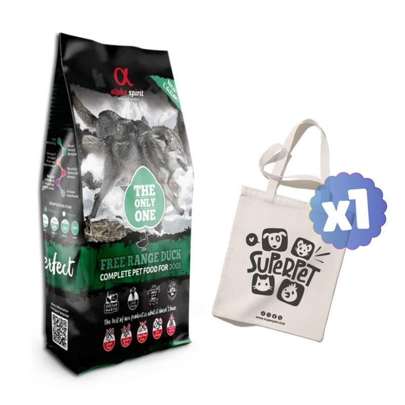 45% carne de pato fresca, 20% carne de pollo fresca, 20% pescado entero fresco (alacha (Sardinella aurita), caballa (Scomber scombrus), jurel (Trachurus spp.), sardina (Sardina pilchardus)), almidón hidrolizado, huevos, pulpa de Beta Vulgaris, levadura de cerveza (Saccharomyces cerevisiae), pera, piña, achicoria, plátano, comino (Cuminum cyminum), orégano (Origanum vulgare) anís (Pimpinella anisum), cúrcuma (Curcuma longa), hinojo (Foeniculum vulgare)