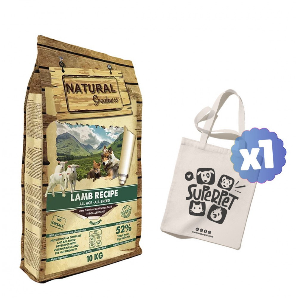 Carne deshidratada de cordero (24%), Carne fresca de cordero (11%), Aceite de Pollo (11%), Guisantes, Patata, Hidrolizado de hígado de cordero (3%), Zanahoria, Calabaza, Proteína de patata, Levadura, Pulpa de remolacha, Aceite de Salmón (3%), Semilla de linaza, Mix de frutas (Manzana y Arándanos), Mix de verduras (Tomate y Espinacas), Algas, Manano-oligosacáridos (MOS), Inulina (FOS), Yuca, Romero, Perejil, Glucosamina y Condroitina.