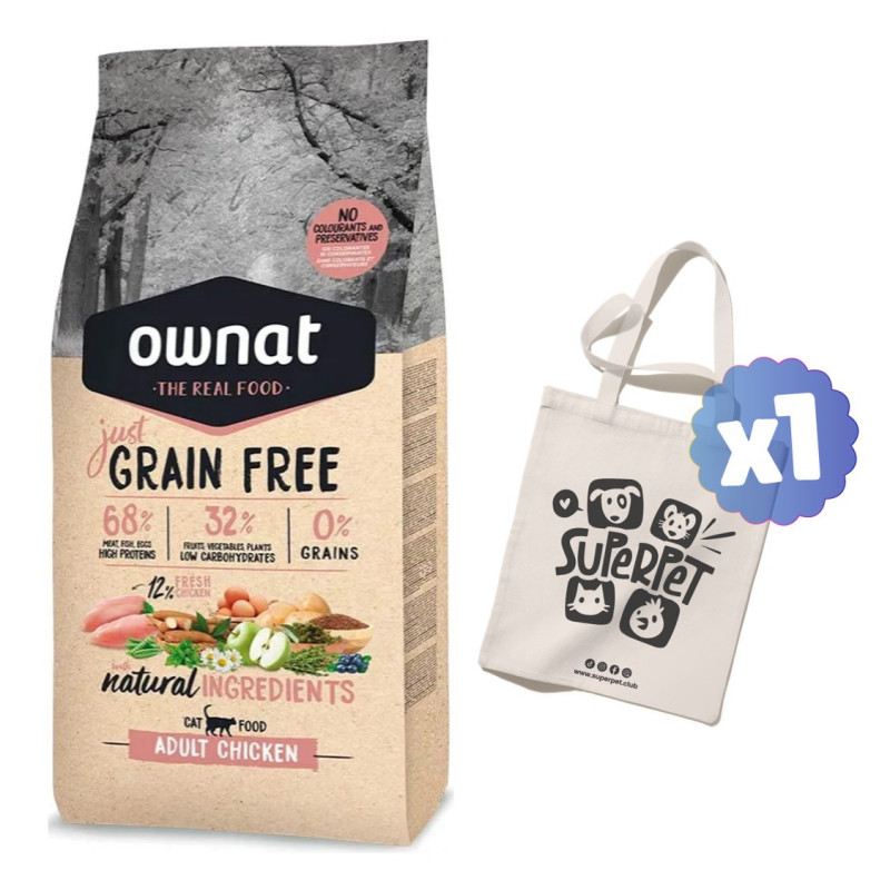 Pollo deshidratado (26%), pollo fresco* (min 12% antes de extrusión), cerdo deshidratado (12%), guisantes enteros* (12%), grasa avícola (preservada con antioxidantes naturales), salmón hidrolizado (8%), raíces de mandioca* (7%), patata deshidratada* (6%), pulpa de remolacha, proteína hidrolizada de pollo, levadura de cerveza* (1%), manzana* (1%), huevo deshidratado* (1%), aceite de pescado (preservado con antioxidantes naturales), semilla de lino* (0,5%), sal gema*, alfalfa deshidratada*, fructo y manano oligosacáridos, algas marinas deshidratadas* (500 mg/kg), glucosamina (500 mg/kg), yucca schidigera, condroitín sulfato (100 mg/kg), arándanos* (100 mg/kg), tomillo* (80 mg/kg), flor de manzanilla* (80 mg/kg), hinojo* (80 mg/kg), equinácea* (80 mg/kg), té verde* (80 mg/kg).
