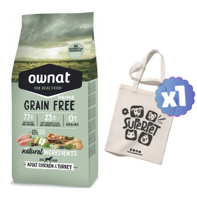 Pollo fresco* (mín. 25% antes de la extrusión), pavo fresco* (mín. 25% antes de la extrusión), pollo deshidratado (14%), raíces de mandioca* (6%), cerdo deshidratado (6%), guisantes enteros* (5%), grasa avícola (preservada con antioxidantes naturales), pescado deshidratado (anchoveta, jurel y caballa), vaina de algarroba* (3%), patata deshidratada* (3%), proteína hidrolizada de pollo, pulpa de remolacha, huevo deshidratado* (1%), manzana* (1%), aceite de pescado (preservado con antioxidantes naturales), alfalfa deshidratada*, levadura de cerveza* (1%), algas marinas deshidratadas* (500 mg/kg), fructo y manano oligosacáridos, sal gema*, glucosamina (500 mg/kg), yucca schidigera, condroitín sulfato (100 mg/kg), arándanos* (100 mg/kg), tomillo* (80 mg/kg), flor de manzanilla* (80 mg/kg), hinojo* (80 mg/kg), equinácea* (80 mg/kg), té verde* (80 mg/kg).
