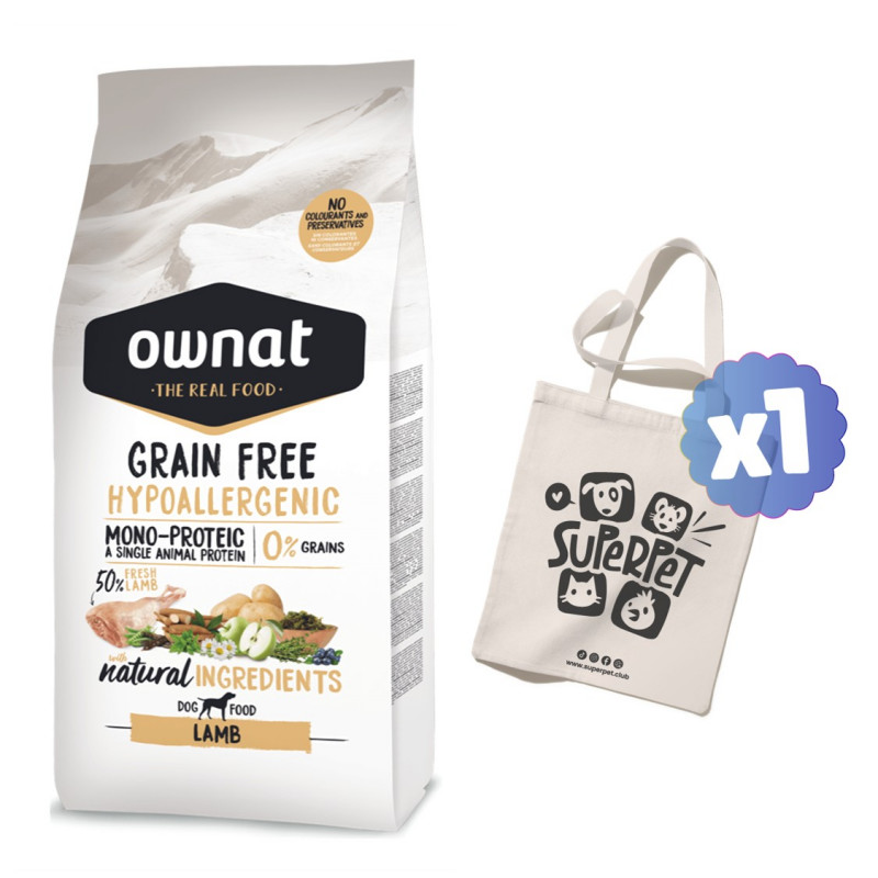 Cordero fresco* (min. 50% antes de la extrusión), carne deshidratada de cordero (14%), raíces de mandioca* (9%), grasa animal (preservada con antioxidantes naturales), guisantes enteros* (9%), vaina de algarroba* (5%), patata deshidratada* (3%), manzana* (1%), pulpa de remolacha, aceite de pescado (preservado con antioxidantes naturales), sal gema*, alfalfa deshidratada*, fructo y manano oligosacáridos, algas marinas deshidratadas* (500 mg/kg), glucosamina (500 mg/kg), yucca schidigera, condroitín sulfato (100 mg/kg), arándanos* (100 mg/kg), tomillo* (80 mg/kg), flor de manzanilla* (80 mg/kg), hinojo* (80 mg/kg), equinácea* (80 mg/kg), té verde* (80 mg/kg).