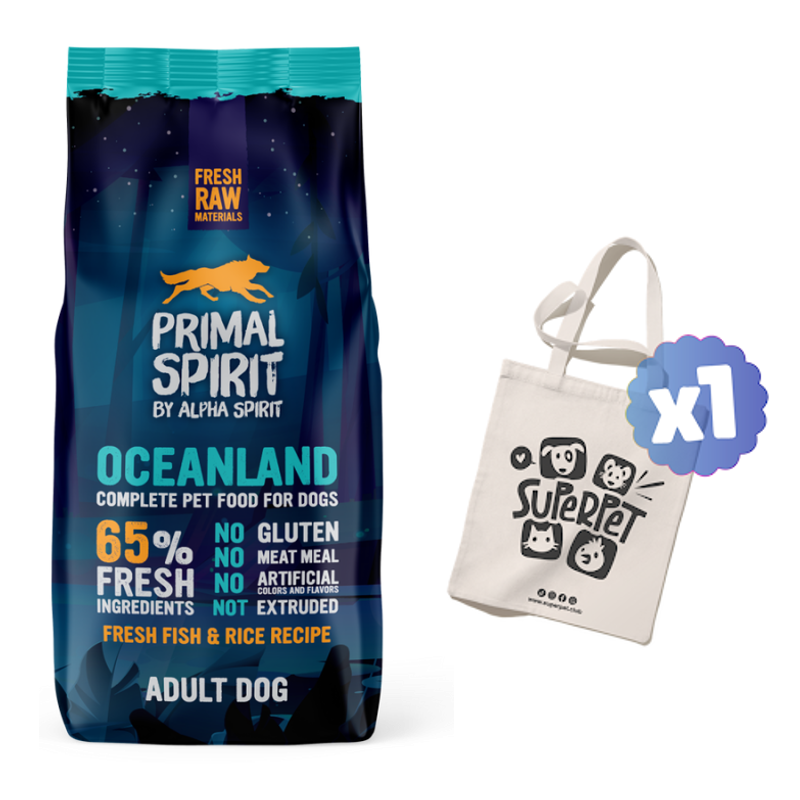 Pienso para perros adultos sin cereales Primal Spirit 65% Oceanland PESO PACK 2 x 12 Kg