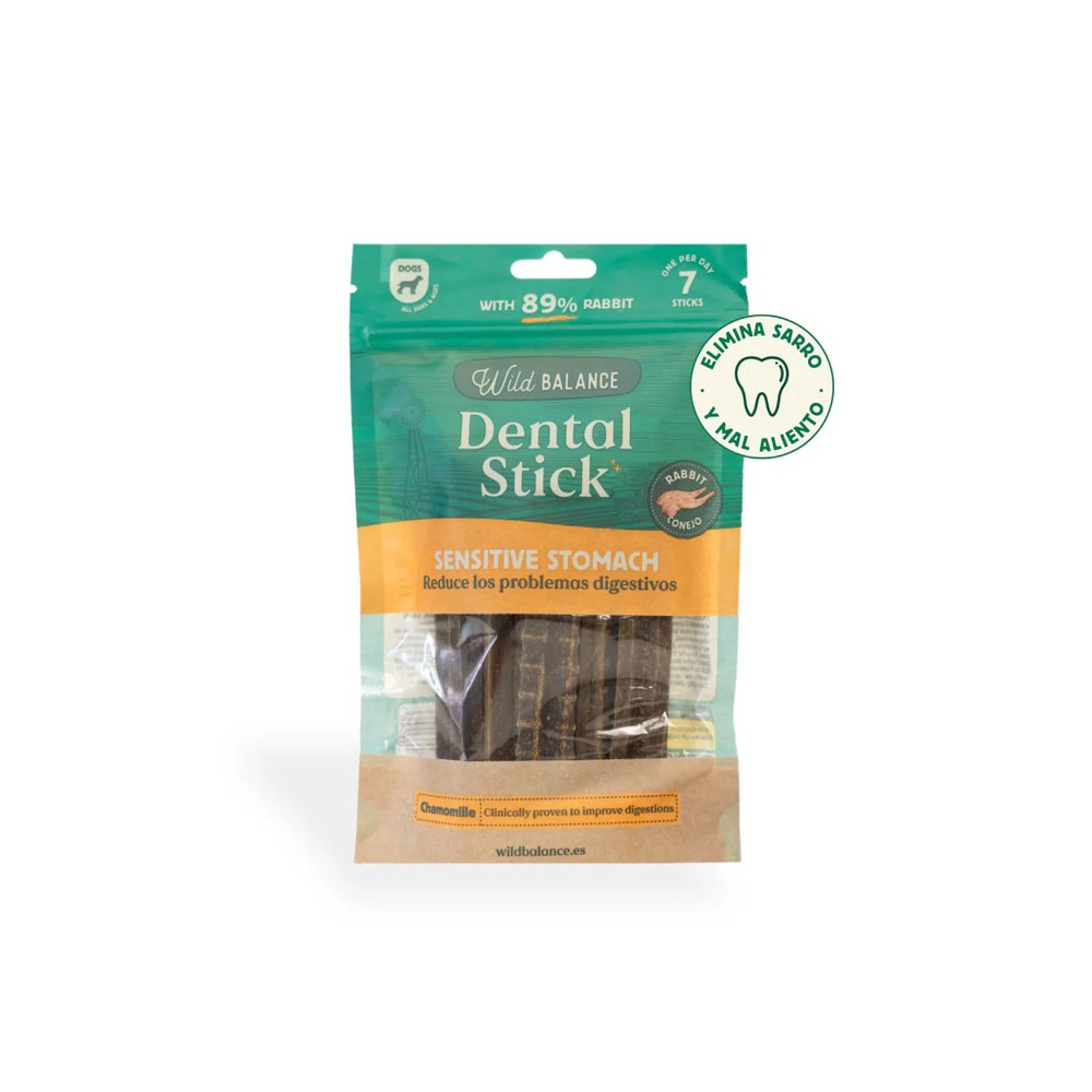 Snacks para el cuidado dental de tu perro Wild Balance DENTAL STICKS para Perros Tipo de Cuidado Sensitive Stomach de Conejo