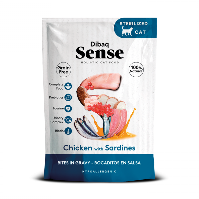 Alimento en salsa Dibaq Sense Cat Bocaditos de Pollo con Sardinas PESO 100 gr