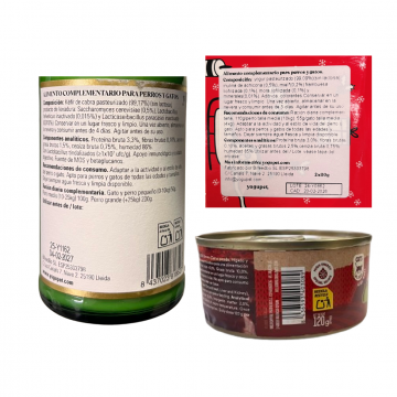 Ración diaria complementaria, gato y perro pequeño (hasta 10kg) 50 gramos.